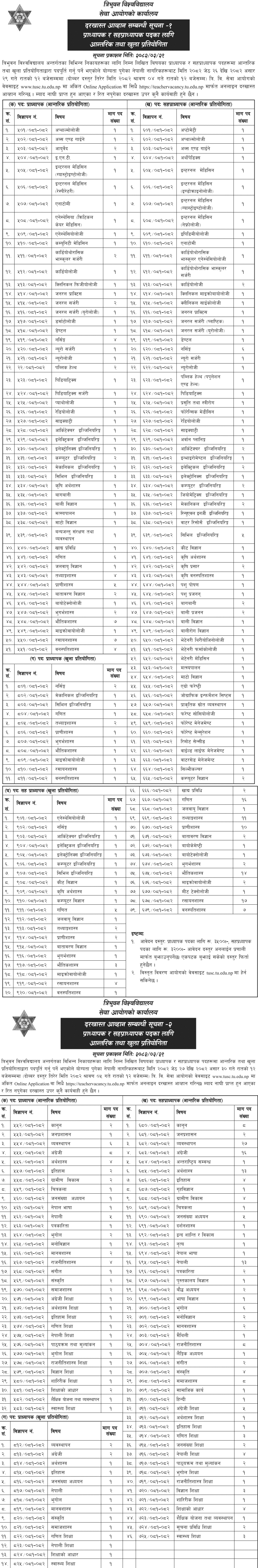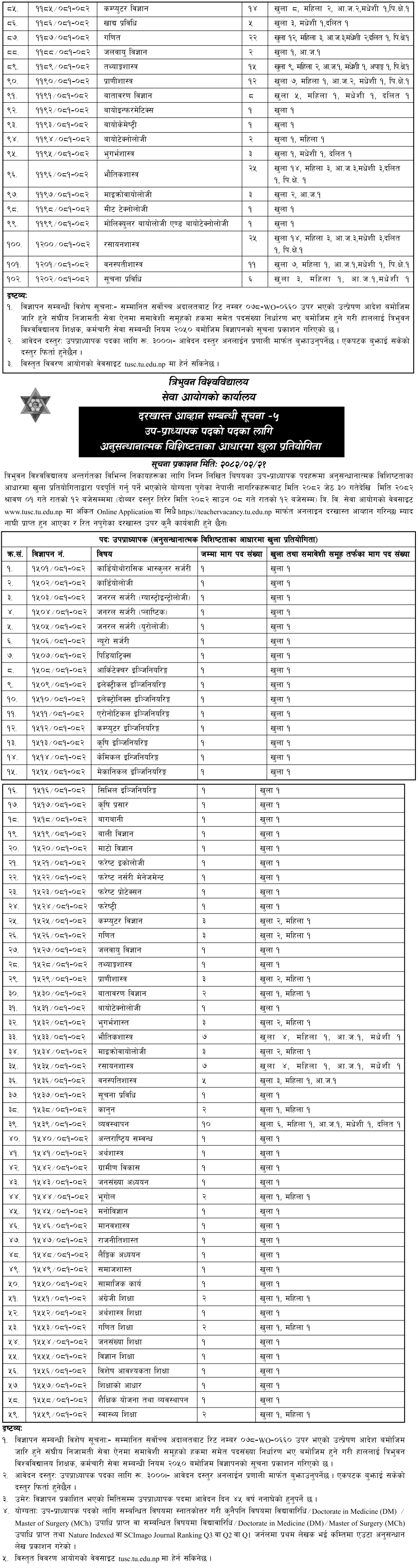 त्रिवि सेवा आयोगले इन्जिनियरिङका विभिन्न विषयहरुमा खुला तथा आन्तरिक दुवै तर्फका लागि प्राध्यापक, सह प्राध्यापक तथा उप प्राध्यापक पदका लागि आवेदन माग गरेको छ ।